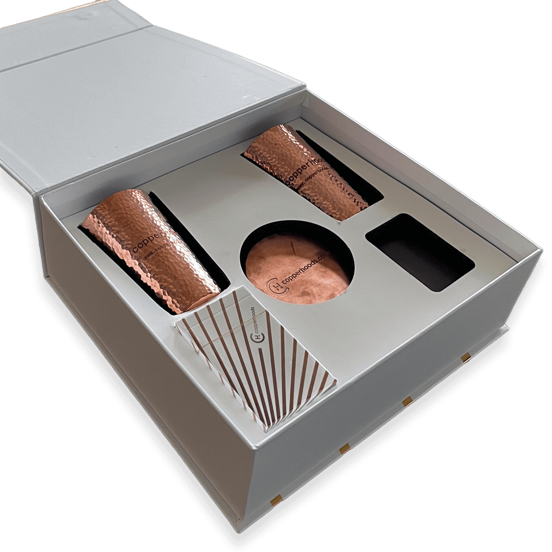 Copper Tumbler & Metal Coasters: Thoughtful branded items that reinforce the craftsmanship and luxury of CopperHoods.